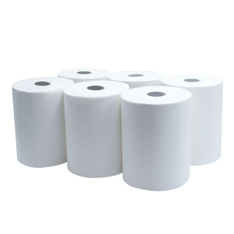 Полотенца бумажные в рулоне изготовлены из 100% целлюлозы. Сырье имеет высокие показатели влаговпитываемости, что в свою очередь приводит к экономичному использованию. Не имеют перфорацию, гильза не вытяжная. Подходят для держателей с автоматической или механической подачей полотенец, где длина листа устанавливается аппаратно. Упакованы по 6 рулонов в полиэтиленовой упаковке