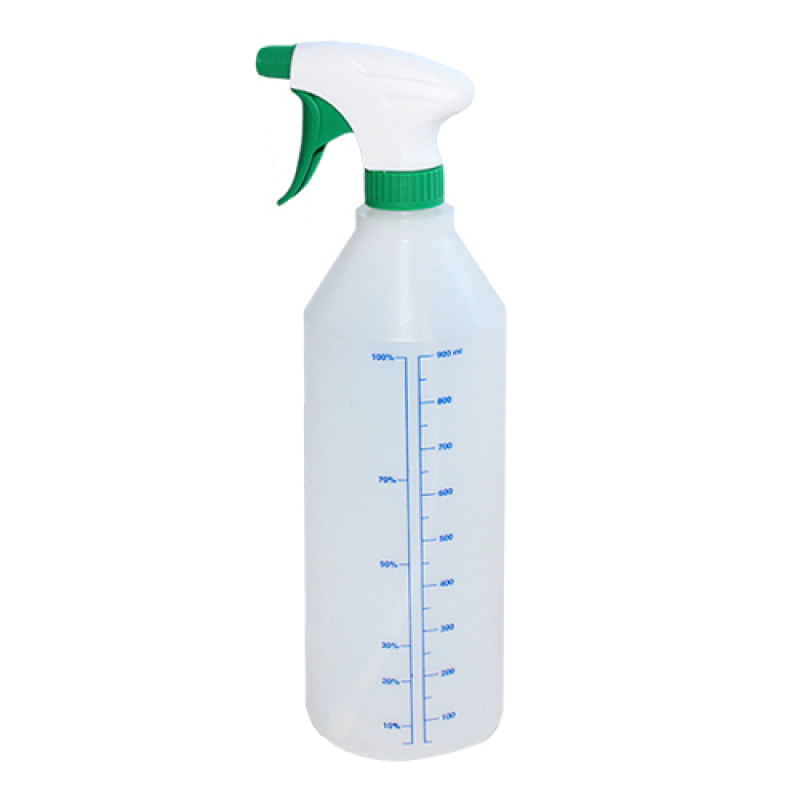 Пластиковый пульверизатор с распылителем зеленого цвета. Используется для распыления чистящих и моющих средств на различные поверхности.