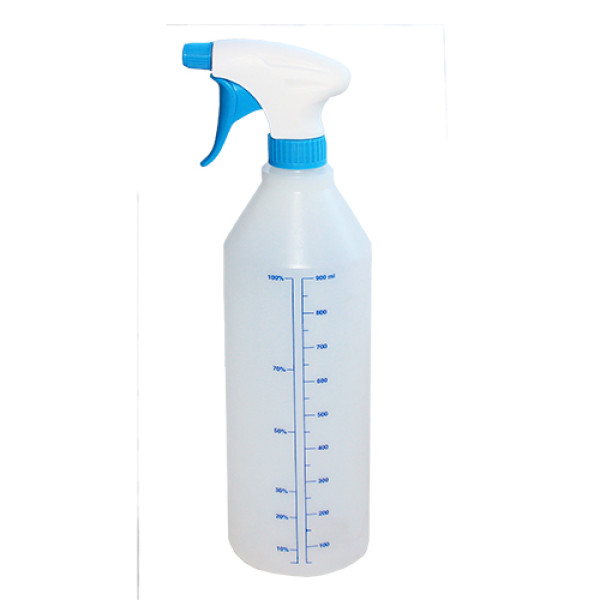 Пластиковый пульверизатор с распылителем синего цвета. Используется для распыления чистящих и моющих средств на различные поверхности.