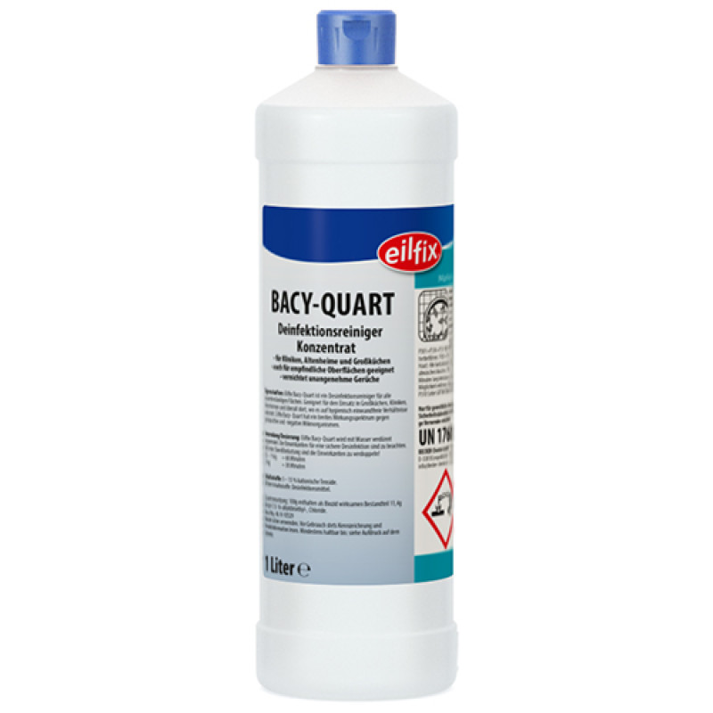 Bacy-Quart — моющее средство с дезинфицирующим эффектом для любых водостойких поверхностей. Используют на кухнях, в клиниках, домах престарелых и везде, где важно поддержание повышенных гигиенических стандартов. Bacy-Quart имеет широкий спектр действия против грамположительных и грамотрицательных микроорганизмов.
