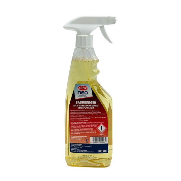 Средство для мытья ванной Eilfix Neo со свежим ароматом подходит для использования на всех кислотостойких поверхностях в санитарной зоне.