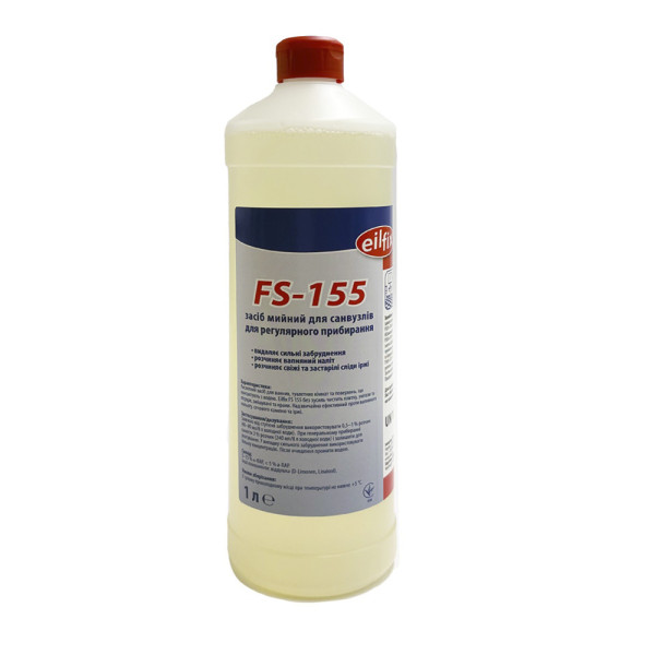 Кислотное средство для ванных, туалетных комнат и поверхностей, контактирующих с водой. FS-155 позволяет без усилий очистить плитку, унитазы и писсуары, смесители, краны. Эффективное средство против известкового налёта, мочевого камня и ржавчины.