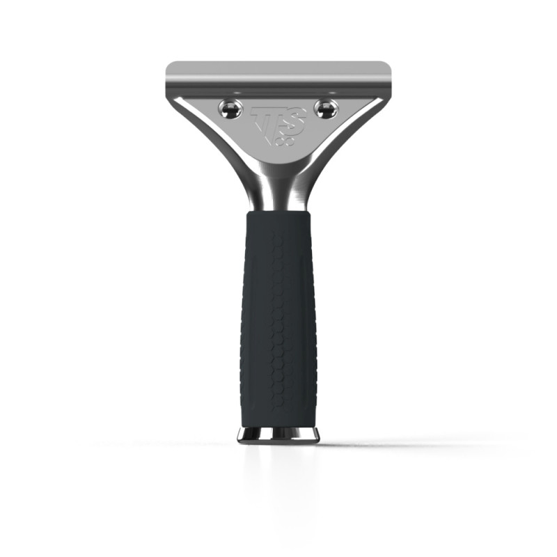 Этот аксессуар с зажимом из нержавеющей стали и резиновой рукояткой для лучшего удержания предназначен для скребков для мытья окон. Можно использовать с телескопической рукояткой.