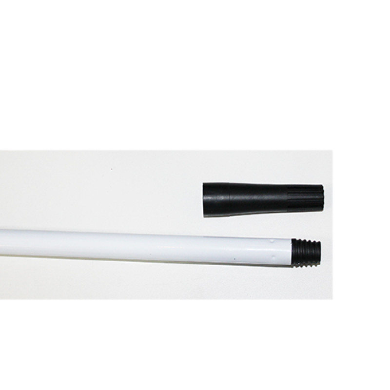 Рукоятка металлическая пластифицированная телескопическая состоит из из двух частей по 1.5 м и пластмассового черного наконечника, который позволяет использовать рукоятку для основ как с отверстием так и с резьбой.