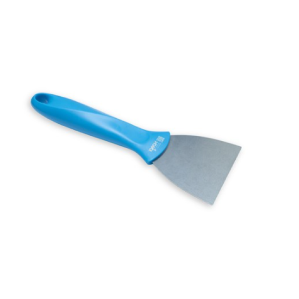Скребок с лезвием из нержавеющей стали, быстро удаляет накипь и грязь с поверхностей. Незаменимый помощник при обработке пищевых продуктов и идеально подходит для резки теста. Оснащен отверстием против капель для надлежащего хранения. Инновационная маркировка гарантирует прослеживаемость по всей цепочке поставок. Ширина лезвия - 75 мм.