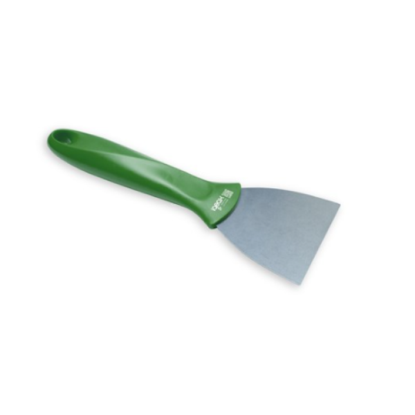 Скребок с лезвием из нержавеющей стали, быстро удаляет накипь и грязь с поверхностей. Незаменимый помощник при обработке пищевых продуктов и идеально подходит для резки теста. Оснащен отверстием против капель для надлежащего хранения. Инновационная маркировка гарантирует прослеживаемость по всей цепочке поставок. Ширина лезвия - 75 мм.