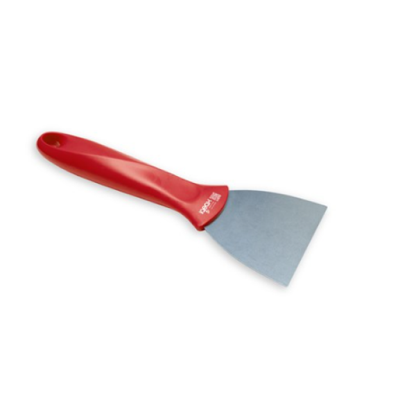 Скребок с лезвием из нержавеющей стали, быстро удаляет накипь и грязь с поверхностей. Незаменимый помощник при обработке пищевых продуктов и идеально подходит для резки теста. Оснащен отверстием против капель для надлежащего хранения. Инновационная маркировка гарантирует прослеживаемость по всей цепочке поставок. Ширина лезвия - 75 мм.