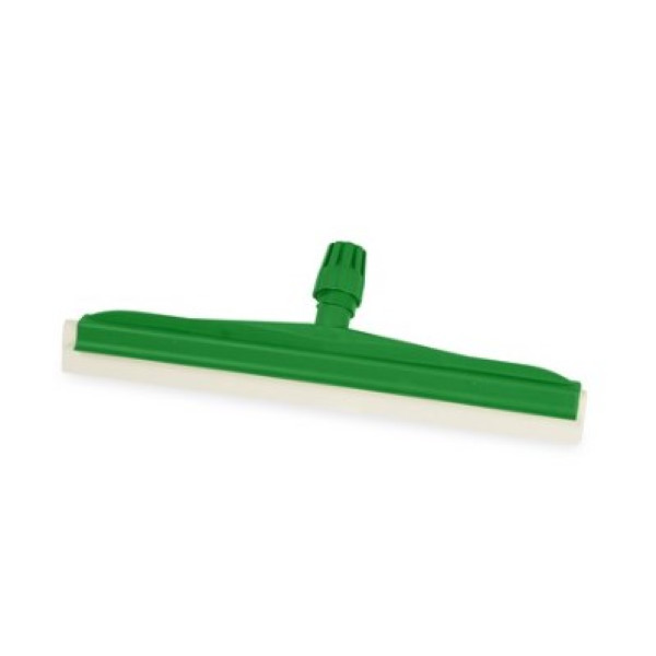 Скребок длиной 45 см с двойным белым лезвием из вспененной резины для более эффективной сушки. Очень стойкий. Оснащен кольцевой гайкой для рукояток Ø 21-25 мм. Скребок выполнен из полипропилена зеленого цвета.
