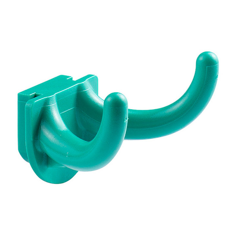 Крючок двойной из зеленого пластика предназначен для размещения аксессуаров на тележках серии GREEN LINE, MAGIC LINE/