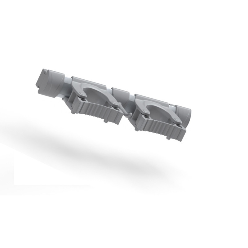 Профессиональный держатель инструмента идеально подходит для любого уборочного инвентаря. Длина 30 см с 2 держателями для рукояток диаметром от 25 до 35 мм и 1 крючком. Сами держатели и крючок регулируются на алюминиевой планке и могут комплектоваться дополнительными держателями и планками. Поставляется вместе с винтами для подвешивания на стену. Крепеж входит в комплект