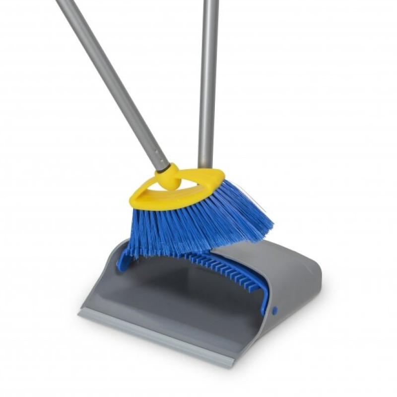 Набор для уборки с опрокидывающимся совком для мусора , щеткой и прочными металлическими ручками. Система блокировки совка обеспечивает безопасное и легкое хранение грязи, а также быстрое опорожнение. Резиновая кромка совка плотно прилегает к полу для идеальной очистки. Набор можно легко повесить в узких местах. Качественный дизайн и материалы. Диаметр рукояток 21 мм, итальянская резьба