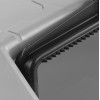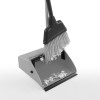 Жесткий совок выполнен из ударопрочного материала, имеет небольшую резиновую пластину, идеально прилипает к полу, что позволяет легче собирать мелкий мусор и пыль. Специальная форма пластиковой части, к которой крепится алюминиевая ручка, может разворачиваться на 90° и позволяет оператору не наклоняясь убирать.