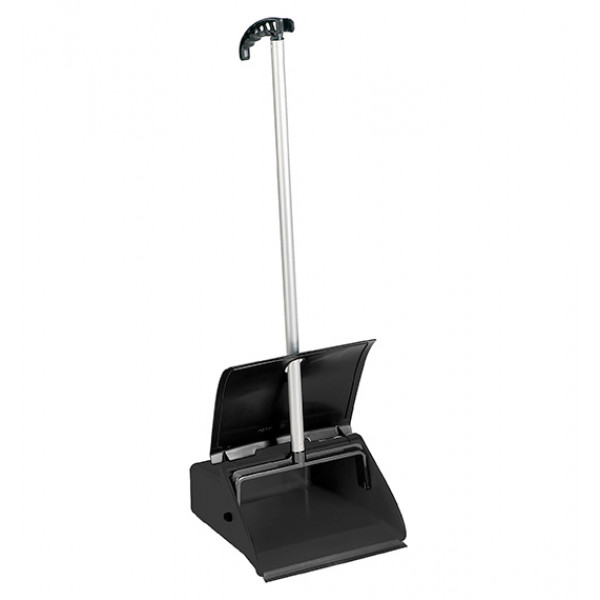 Крепкий совок изготовлен из противоударного пластика черного цвета, оснащен тонкой полоской резины, которая позволяет собирать даже самую мелкую пыль. Крышка позволяет удерживать мусор в совке при переноске. Вращающаяся часть позволяет быстро приводить совок в вертикальное положение. Эргономичная удобная рукоятка.