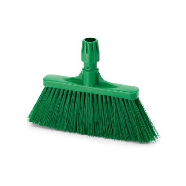 Высокая метла с наклоненной щетиной идеально подходит для уборки в углах. Универсальное соединение подходит для всех типов основной резьбы (ITA-FRA-GER-USA) и оснащено кольцевой гайкой для рукояток Ø 21-25 мм. Эта щетка была специально разработана для помещений, в которых гигиенические требования очень важны. Основание изготовлено из нетоксичного пластика устойчивого к моющим средствам, выдерживает температуры от -20°С до +80°С. Это позволяет использовать такое уборочное оборудование как в холодной среде (холодильник), так и для мойки в автоклавах. Полиэстровые нити щетины не гигроскопичны и нетоксичны, сохраняют свою прочность и эластичность при температуре от -20°C до +80°C. Закругленные формы щетки предотвращают накопление на ней грязи.