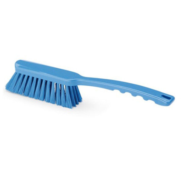 Щетка с мягкой (Ø 0,3 мм) средней длины(5,5см) щетиной выполнена из полипропилена и полибутилентерефталата (PP-PBT) синего цвета, с фигурной ручкой для чистки оборудования с обычными рабочими поверхностями.