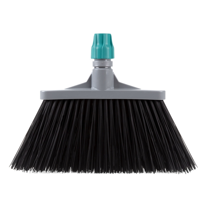 Щетка с полипропиленовой основой, жесткой ПЭТ-щетиной (сделана из переработанного пластика) и кольцевым креплением. Идеально подходит для уборки крупного мусора.