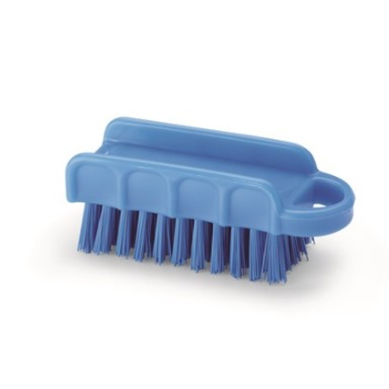 Небольшая щетка с ручкой и короткой щетиной средней мягкости(Ø 0,5мм ) выполнена из полипропилена и полибутилентерефталата (PP-PBT) синего цвета.