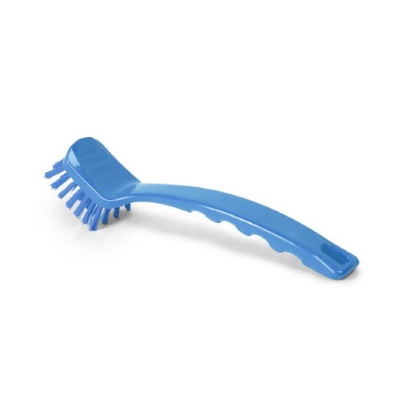 Небольшая щетка с длинной ручкой и короткой щетиной средней мягкости(Ø 0,5мм ) выполнена из полипропилена и полибутилентерефталата (PP-PBT) синего цвета.