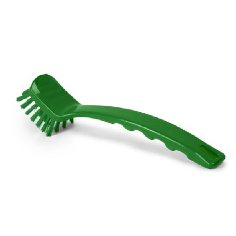 Небольшая щетка с длинной ручкой и короткой щетиной средней мягкости(Ø 0,5мм ) выполнена из полипропилена и полибутилентерефталата (PP-PBT) зеленого цвета.