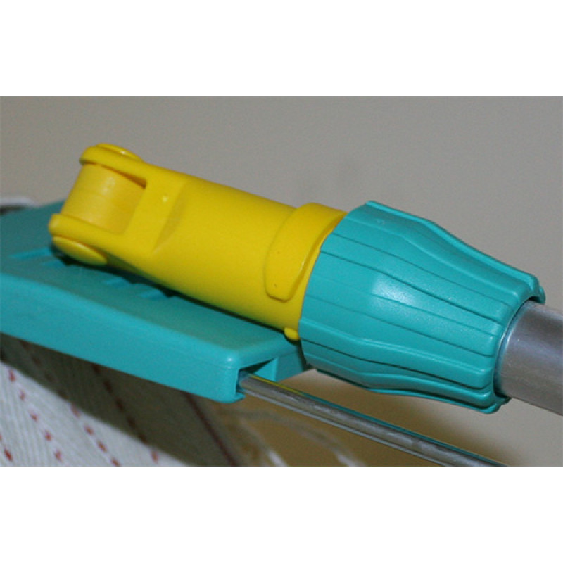 Зажим желтого цвета из полипропилена. Предназначен для фиксации основы швабры к рукоятке. Является дополнительным аксессуаром. Входит в комплект основы без блокировки.