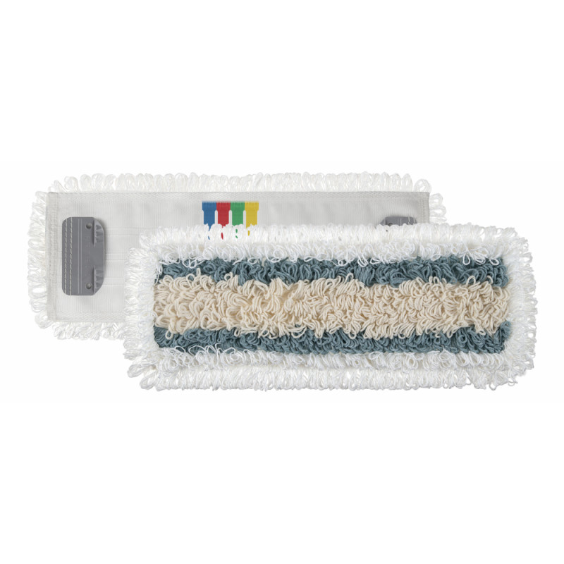 Плоский петлевой моп из микрофибры, полиестра и хлопка. Основа из полиестра. Количество стирок - 300-350. Предназначен для универсального использования для всех типов поверхностей. Используется совместно с основой Uni System. Позволяет мыть и дезинфицировать поверхности( пол, стены, потолок). Стирать при температуре не более 90° С, не отбеливать и не сушить в стиральной машине.
