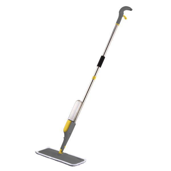 Система миття підлоги з розпилювальним механізмом для легкого очищення без ведра. Просто наповніть резервуар водою та улюбленим миючим засобом, натисніть важіль, щоб розпорошити його на підлогу, та протріти. Спеціальний моп з мікрофібри видаляє та вловлює грязь. Підходити для всіх типів підлоги, навіть найделікатніших. Обертова головка для важкодоступних кутів. Моп легко знімати та прати в пральній машині. Довжина мопу 40 см.