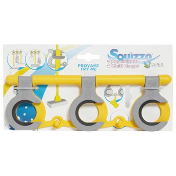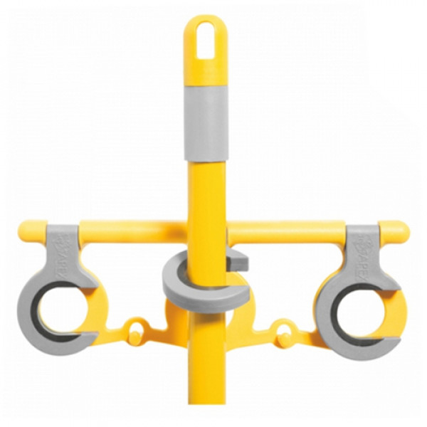 Небольшая легкая пластмассовая вешалка для рукояток уборочного инвентаря позволяет в подсобном помещении поддерживать порядок. Можно использовать любые рукоятки, швабры, трости и т.п.(3 единицы). 2 пластмассовых крючка позволяют разместить еще 2 единицы тряпок или мопов. Крепиться на стену с помощью трех саморезов( в комплект не входят).