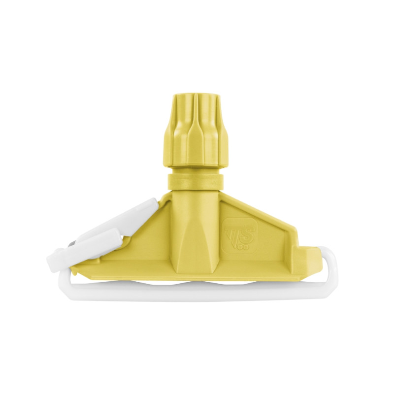Зажим-держатель для веревочного мопа (запаски) из полипропилена. Легко можно заменить моп. Удобная регулируемая ручка позволяет использовать рукоятки с отверстием с различным диаметром - 20-24 мм.