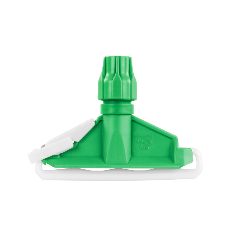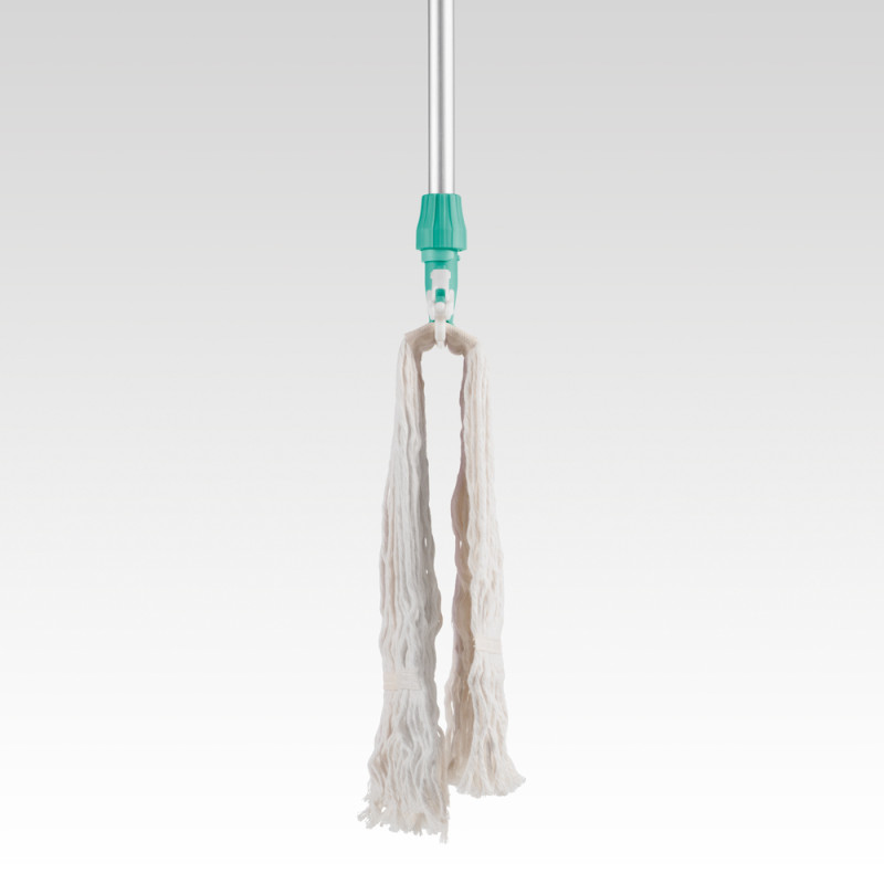 Зажим-держатель для веревочного мопа (запаски) из полипропилена. Легко можно заменить моп. Удобная регулируемая ручка позволяет использовать рукоятки с отверстием с различным диаметром 20-24 мм.