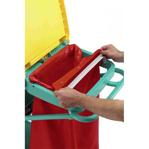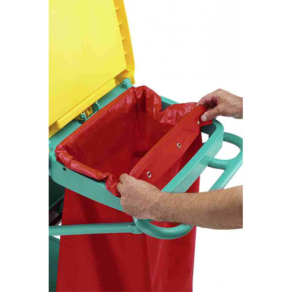 Складной держатель мусорного мешка на 120 литров изготовлен из полипропилена.