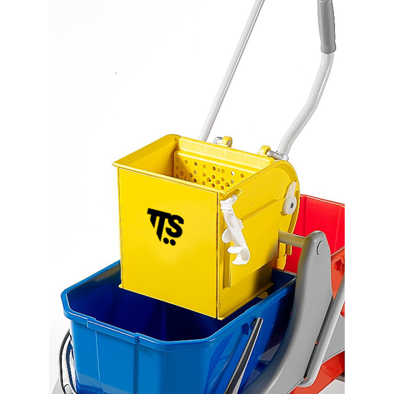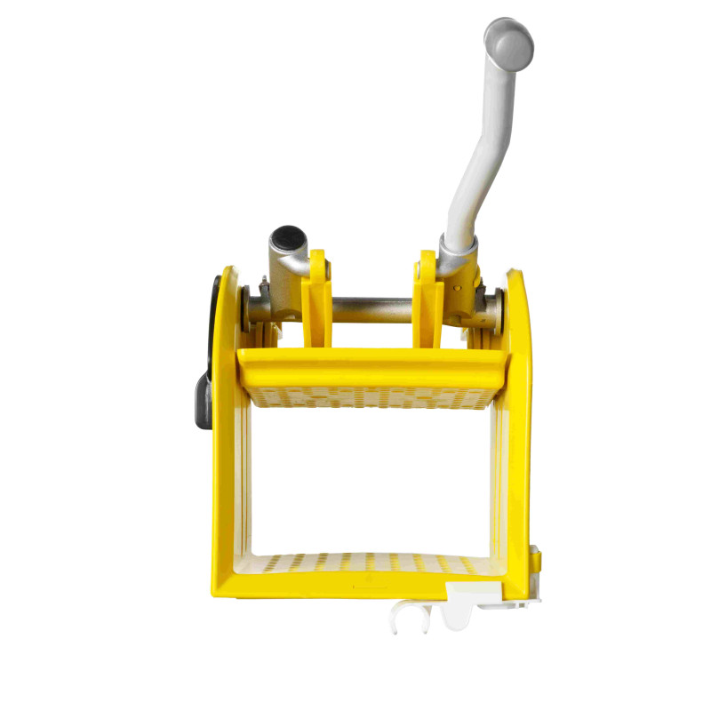 Бездонный плоский отжим выполнен из полипропилена. На баке есть регулируемый крючок для крепления рукоятки швабры. Отсутствие дна означает экономию времени во время уборки благодаря тому, что полоскание(промывка) и отжим происходят одновременно с помощью одного простого движения внутри отжима без возникновения капель. Может использоваться со всеми моющими системами: BLIK, WET DISINFECTION, WET SYSTEM, веревочные мопы с зажимами.