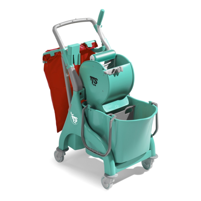 Полипропиленовая тележка с одним ведром на 28л, отжимом DRY и пластиковой "U"-образной рукояткой на пластиковых колесах Ø80мм арт. 3489 и бамперами арт. 3557. Мешок в комплект не входит. Рукоятку желтого цвета можно заменить на рукоятку серого цвета арт. 3311.