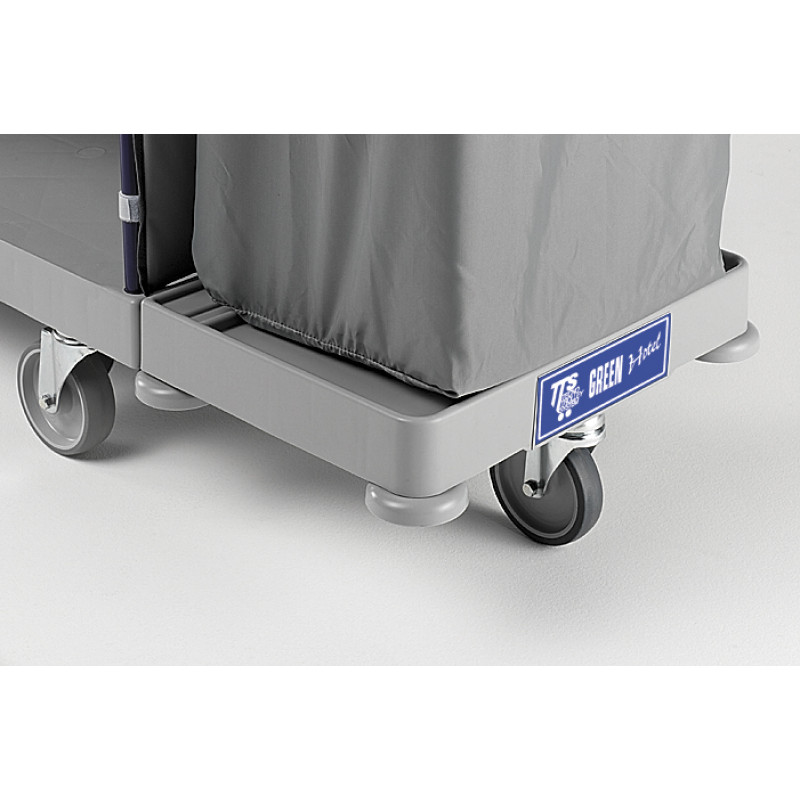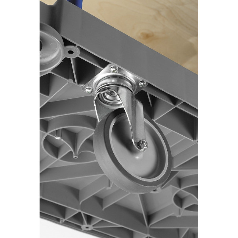База для поддержки мешков на 120 л выполнена из серой прочной пластмассы с колесом диаметром 125 мм.