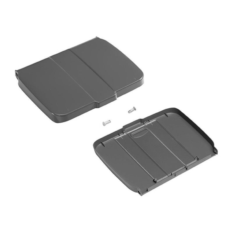 Крышка из серой пластмассы для держателя мешка на 120л. В комплект входит крепеж. Также есть держатель для документа на внутренней стороне крышки.