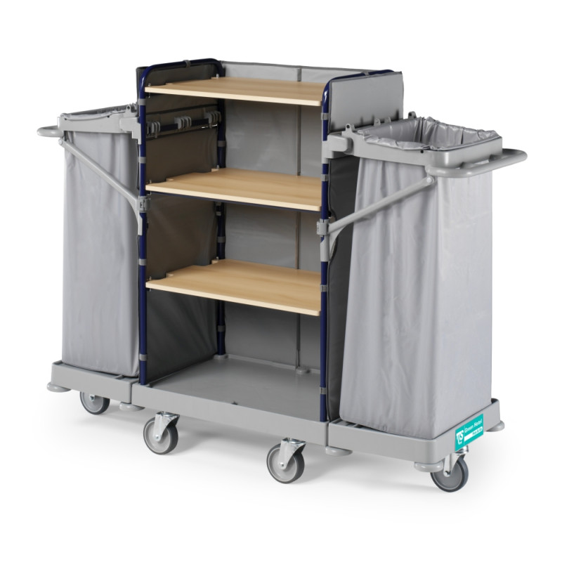 Универсальная тележка из полипропилена и металла, предназначена для любых потребностей в уборке.