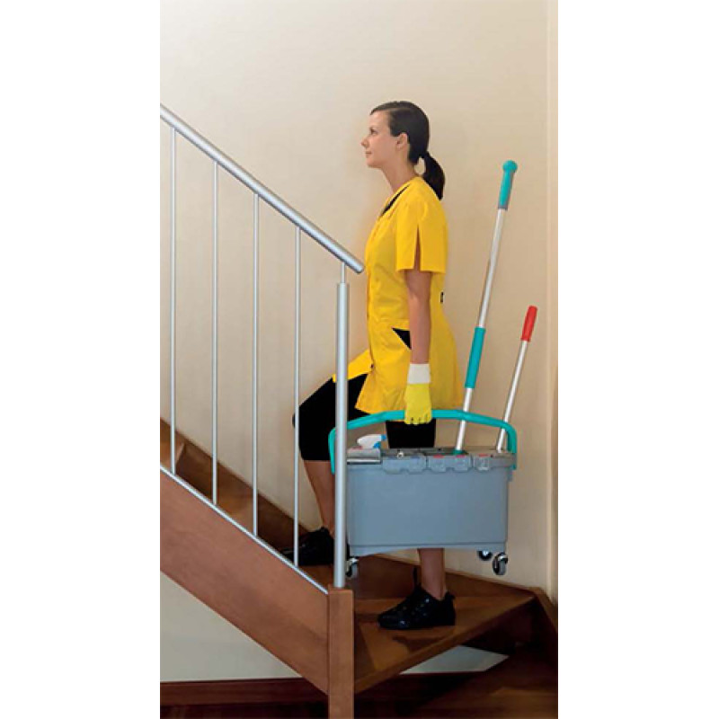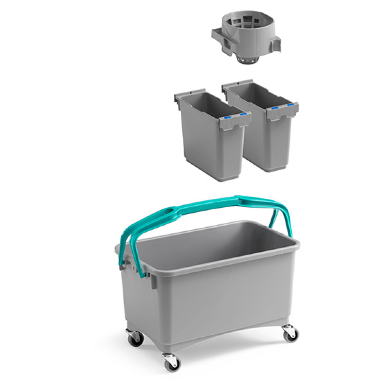 Ведро EROY представляет собой комплект из полипропиленового ведра 28 л с колесами диаметром 50 мм, 2-х 6 л ведер с цветными заглушками( 4 красных, 4 синих), отжима для веревочной швабры. Является многоцелевым компактным, модульным инструментом для уборки. Места применения: квартиры, частные дома, офисы, кафе малых и средних форматов. Предназначено для уборки полов, туалетных комнат, стен, шкафов, полочек, зеркал, окон. Двойная перекрестная рукоятка ведра позволяет без усилий перемещать различный уборочный инвентарь. В 6л ведре удобно замачивать мопы.