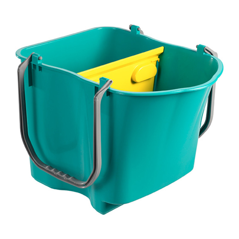 Полипропиленовое ведро объемом 28 л с двумя ручками и съемным запатентованным герметичным разделителем. Позволяет использовать ведро для полоскания и моющего средства раздельно. Благодаря двойным ручкам можно переносить ведро даже с различным количеством в разных отделах. Рекомендуем использовать отжим без дна DRY, а также в тележках для уборки серии NICK, NICK PLUS, NICK STAR.