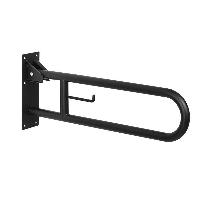Поручень для инвалидов (откидной) подходит для установки в общественных ванных и туалетных комнатах. Отличное решение, чтобы помогать людям с нарушениями опорно-двигательного аппарата обходиться без посторонней помощи и обеспечивать необходимую поддержку при ходьбе, стоянии и сидении. Материал - нержавеющая сталь, покрытая белой эпоксидной краской. Отличается высокой прочностью и антикоррозийными свойствами. Этот поручень можно переместить из вертикального положения в горизонтальное вручную. Чтобы переместить поручень из горизонтального положения в вертикальное просто приподнимите поручень и опустите в горизонтальное положение, чтобы сработала блокировка. Откидной захват 738 мм с держателем туалетной бумаги. Поднимается на 90°.