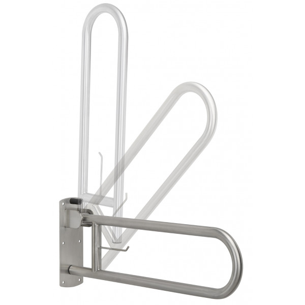 Поручень для лиц с инвалидностью (откидной) подходит для установки в общественных ванных и туалетных комнатах. Отличное решение, чтобы помогать людям с нарушениями опорно-двигательного аппарата обходиться без посторонней помощи и обеспечивать необходимую поддержку при ходьбе, стоянии и сидении. Материал - нержавеющая сталь AISI 304 с сатинированной отделкой. Отличается высокой прочностью и антикоррозийными свойствами. Этот поручень можно переместить из вертикального положения в горизонтальное вручную. Чтобы переместить поручень из горизонтального положения в вертикальное просто приподнимите поручень и опустите в горизонтальное положение, чтобы сработала блокировка. Откидной захват 738 мм с держателем туалетной бумаги. Поднимается на 90°. В каждом из трех положений поручень блокируется и не позволяет ему упасть.