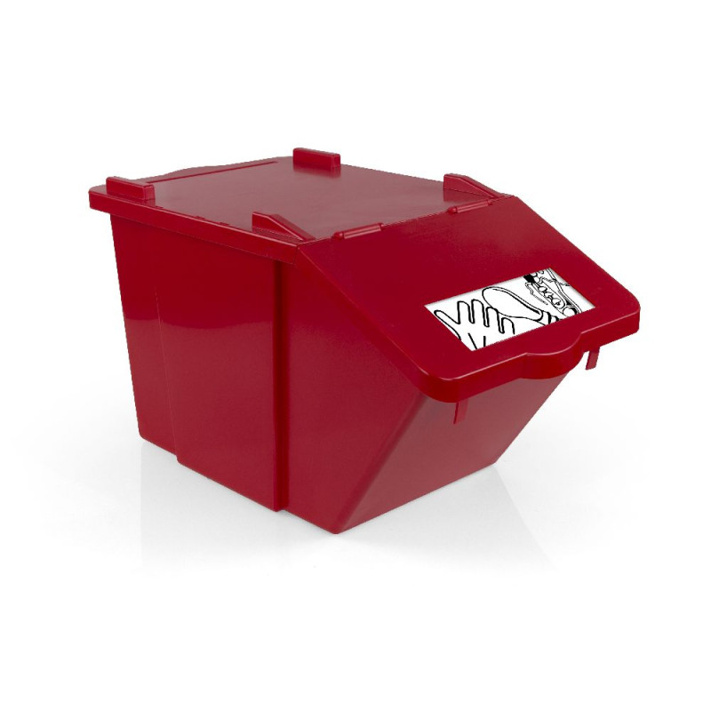 Контейнер ( мусорный бак) изготовлен из полипропилена красного цвета. Подобные контейнеры легко устанавливаются друг на друга. Хорошо использовать для раздельного сбора мусора. На крышке специальное место для размещения этикетки с видом мусора. Этикетки в комплект не входят. Съемная крышка позволяет легко удалять отходы и быстро очищать мусорный бак. Подходять колеса арт. 3484 диаметром 50 мм.