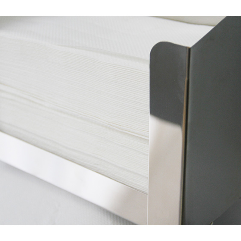 Держатели бумажных полотенец E-LINE V-складка, вместительны и надежны в обслуживании. Тип используемых полотенец – пачки. Удобное перезаполнение. Изготовлен из нержавеющей стали марки AISI 430 с сатинированной отделкой.
