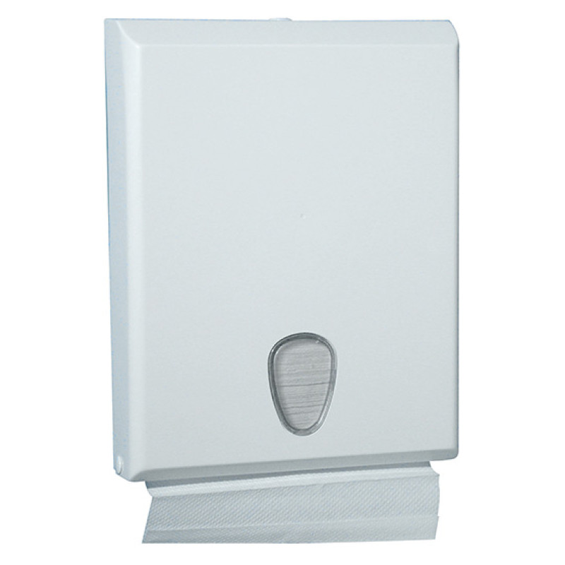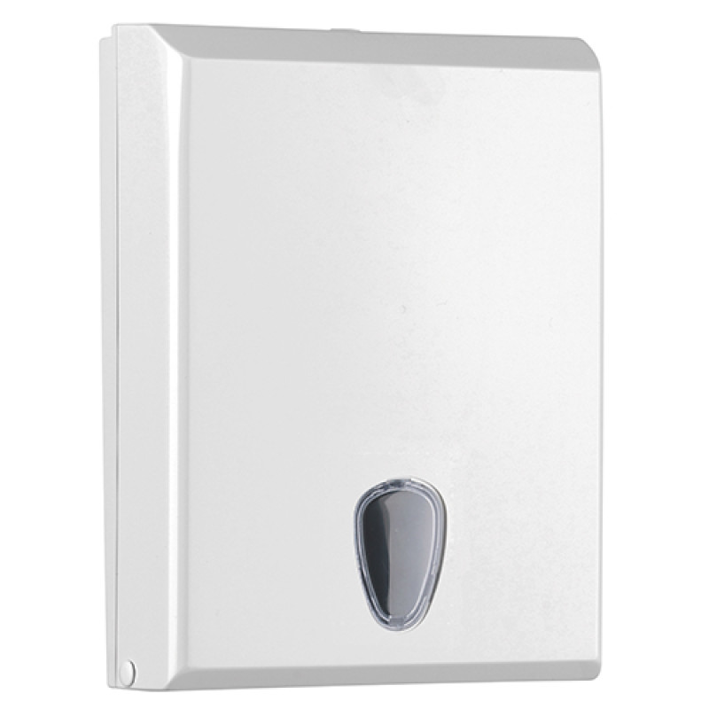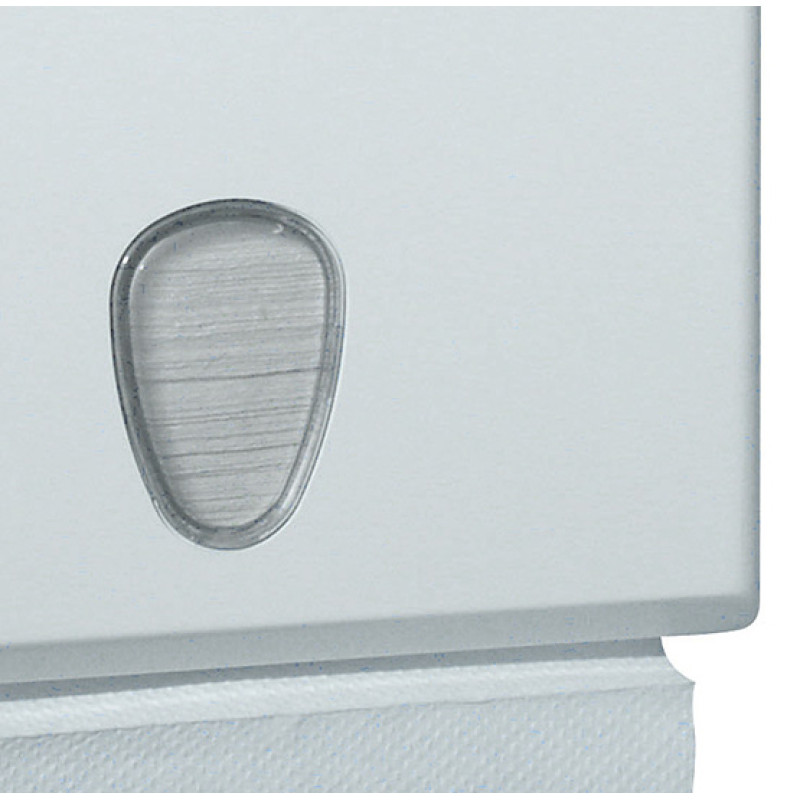 Держатель бумажных полотенец PRESTIGE имеет узкий корпус, который не занимает много места. Вместительная и надежная модель, вмещает 250 листов бумажных полотенец. Габаритные размеры - 295x230х60 мм. Держатель изготовлен из высокопрочного пластика белого цвета. Тип используемых полотенец – пачки (Z-складка). Смотровое окно в виде капли позволяет контролировать наличие бумаги в дозаторе. Замок расположен сверху для удобства дозаправки расходных материалов