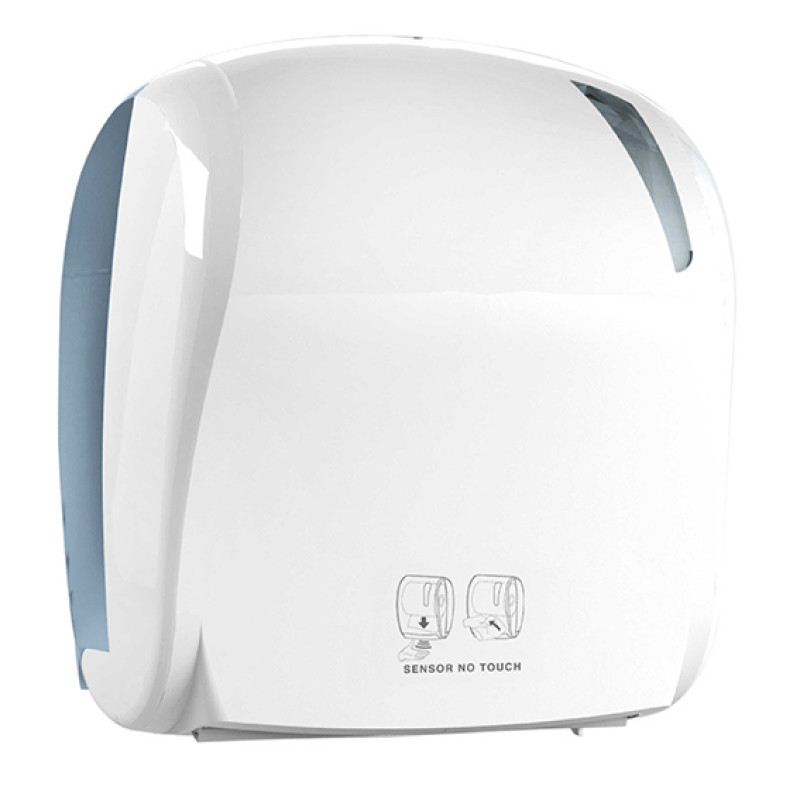 Держатель бумажных рулонных полотенец сенсорный LINEA SKIN (подача бумаги при поднесении рук автоматическая, отрыв руками)с окном просмотра на фронтальной стороне держателя и прозрачной задней стенкой. Большая вместимость сокращает частоту перезаправок. Корпус держателя изготовлен из ударопрочного прозрачного пластика. Габаритные размеры – 371x330x221 мм. Предназначен для бумажных полотенец в рулонах с диаметром не более 190 мм без перфорации. Закрывается на замок. Подходят рулоны высотой до 220 мм. Необходимо 2 шт. батареек типа D.