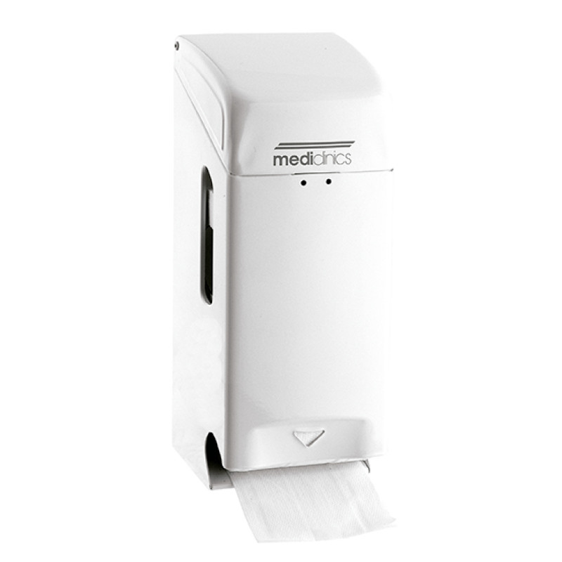 Держатель бумаги туалетной стандарт вертикальный премиум класса предназначен для использования в офисах, ресторанах, больницах. Тип используемой бумаги – в рулоне. Вместимость – 2 рулона диаметром до 125 мм( с гильзой или без нее). Крепится на стену. Держатель туалетной бумаги выполнен из высококачественной нержавеющей стали AISI 304, покрытой белой эпоксидной краской. Особенность: антивандальное исполнение - корпус выполнен из цельного куска металла, специальный ключ для открытия корпуса, а также внутри корпуса расположена пружина, обеспечивающая более рациональное использование бумаги. По бокам держателя и на фронтальной части находятся окна для контроля уровня бумаги.