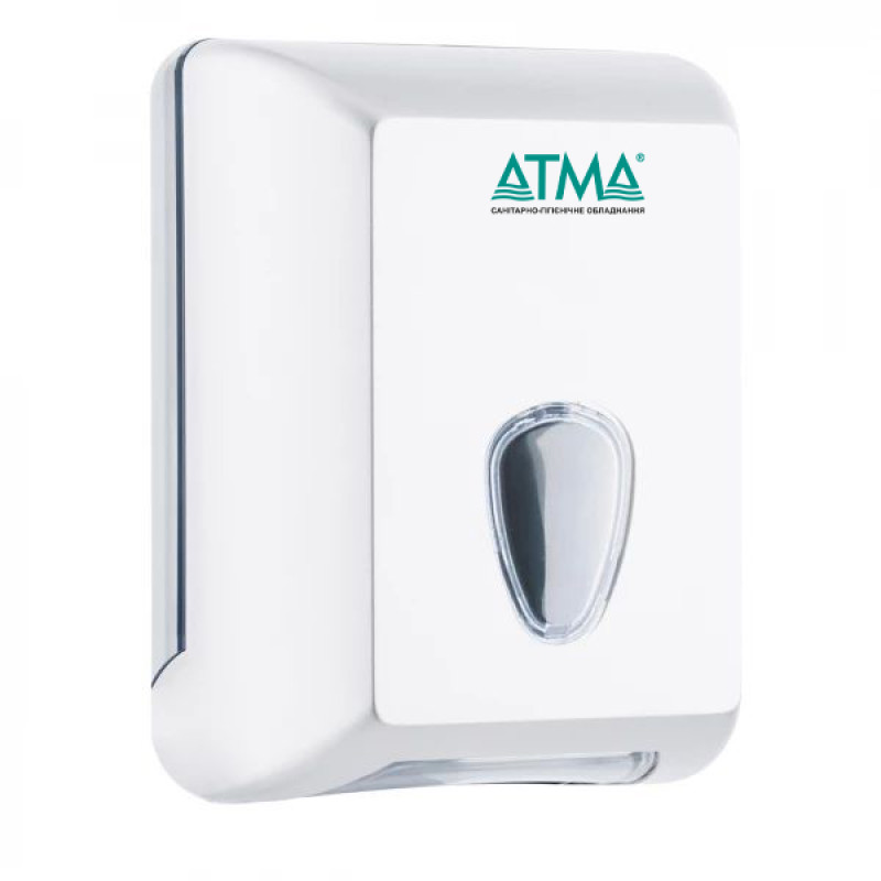 Держатель бумаги туалетной в пачках PLUS с лого АТМА - современный, элегантный и удобный держатель, сделан из ударопрочного пластика белого цвета. Заправляется данный держатель листовой туалетной бумагой в пачках V- сложения.