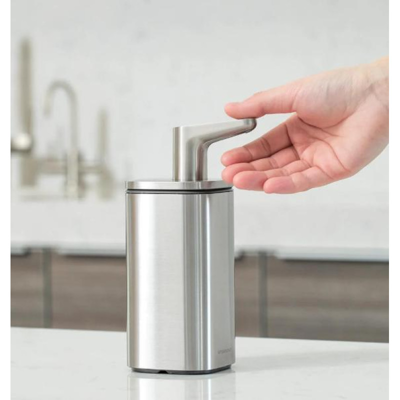 - Дозатор из нержавеющей стали насосной подачей спроектирован с высокой точностью: его инновационная конструкция содержит большую помпу с трубкой для выдачи значительного количества мыла или дезинфектора различной консистенции с гораздо меньшими усилиями.