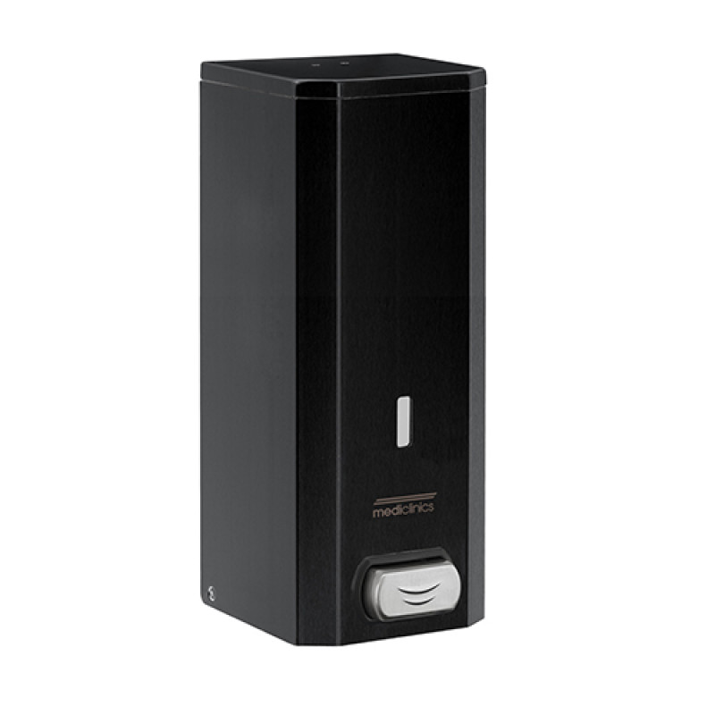 Дозатор жидкого мыла DJ0040B - это современная и универсальная модель, с привлекательным дизайном, с антивандальной защитой, прослужит долго в Вашем интерьере. Объем дозатора - 1,5 л, изготовленный из нержавеющей стали AISI 304, покрытой черной эпоксидной краской, оснащен термопластичным контейнером с верхней крышкой, которая позволяет очень легко заправить жидким мылом сверху. Имеет окно для определения уровня мыла на передней части корпуса, с антикоррозийным антикапельным клапаном, оснащен замком и стандартным ключом Mediclinics.