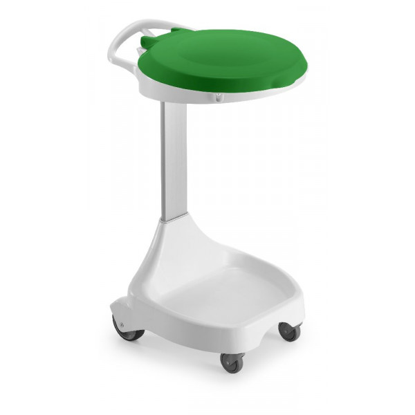 Контейнер открытый для мусора SMILE - элегантная и современная модель емкости для сбора отходов. Оборудован удобной открывающейся зеленой крышкой и кольцом для удержания мусорного мешка. Крышки можно заказать другого цвета для сортировки различного мусора. Гладкие закругленные края упрощают уход за контейнером. 2 колеса диаметром 125 мм и 2 колеса 80 мм и удобная ручка позоляют легко моневрировать уборочным инвентарем. Предназначен для мешков 70/75 х 110 см - 80/85 х 110 см