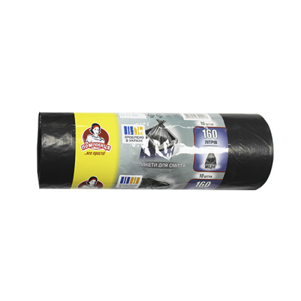 Мешки для мусора полиэтиленовые Помічниця черные, толщина - 40 мкн. Изготовлены из первичного и вторичного сырья, спайка - "звездочка".