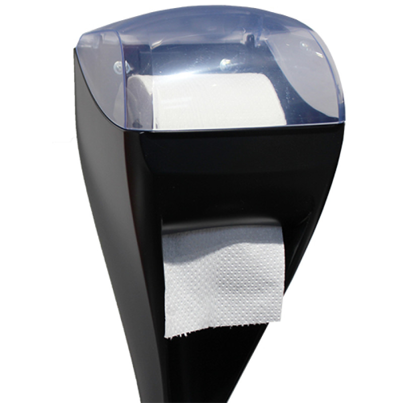 Щетка для унитаза с держателем туалетной бумаги стандартного размера выполнена из ударопрочного пластика цвета Карбон матового оттенка. На протяжении всего срока службы цвет не меняется и изделие сохраняет свой первоначальный вид. Тип установки – настенный. Для замены рулона достаточно просто открыть вверх крышку держателя. Щетина на ершике щетки - белого цвета.